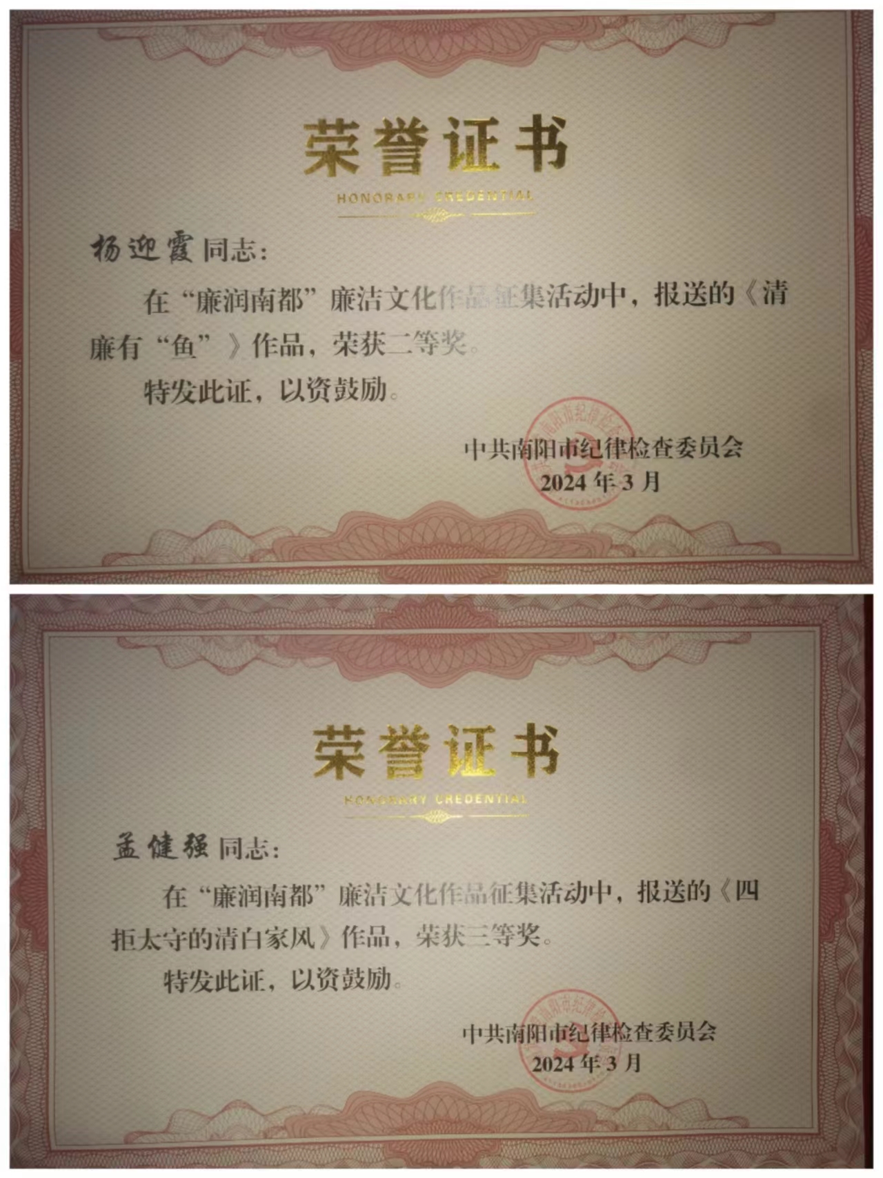 近日,南阳市纪委开展的“廉润南都”廉洁文化作品征集活动评选结果揭晓,我校纪委遴选推送的2篇征文获奖。其中,传媒学院杨迎霞的作品《清廉有“鱼”》荣获二等奖,国有资产管理处孟健强的作品《四拒太守的清白家风》荣获三等奖。